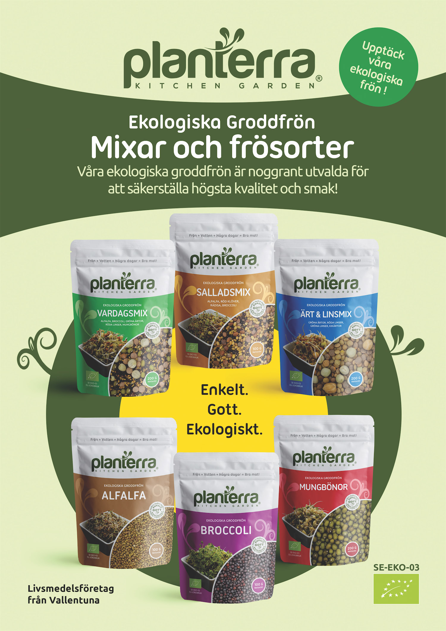 Vårt arbete präglas av kvalitet, spårbarhet och livsmedelssäkerhet. Planterra är EU-ekologiskt certifierat (SE-EKO-03) och registrerat som livsmedelsproducent.